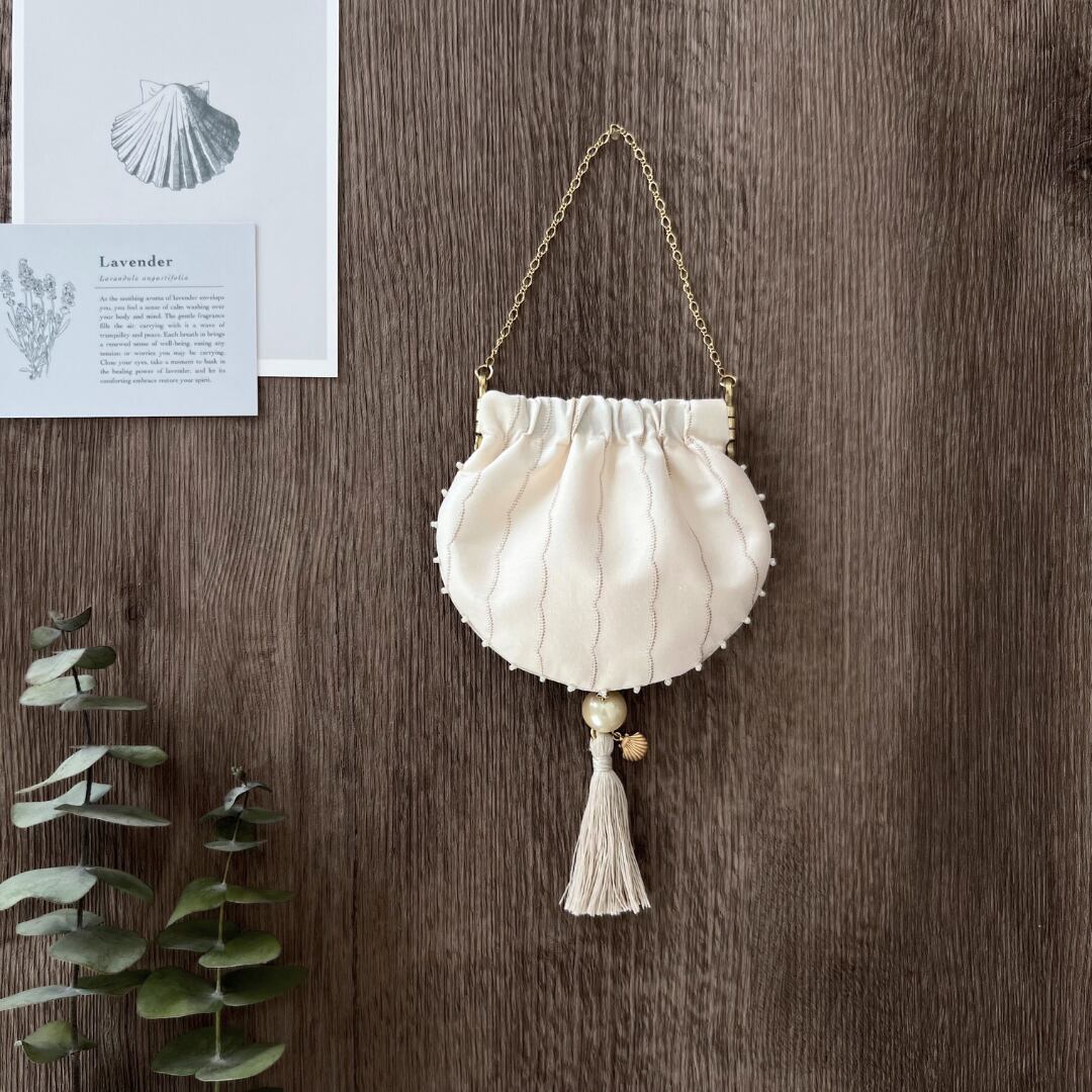 真珠貝をモチーフにした、手のひらサイズのオーナメントサシェ。